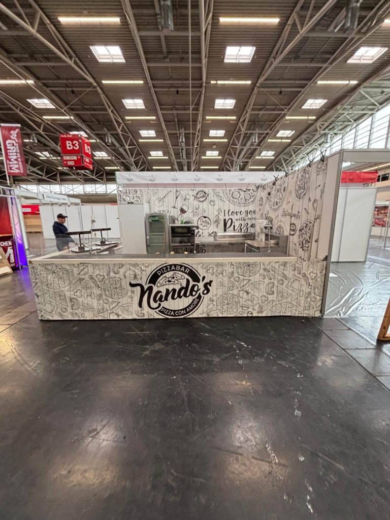 Dank seiner modularen Bauweise ist er nicht nur in Hallen flexibel einsetzbar, sondern kann bei Bedarf auch im Außenbereich genutzt werden. So sind wir jederzeit bestens ausgestattet – egal ob auf Fachmessen, Firmenveranstaltungen oder Outdoor-Events.